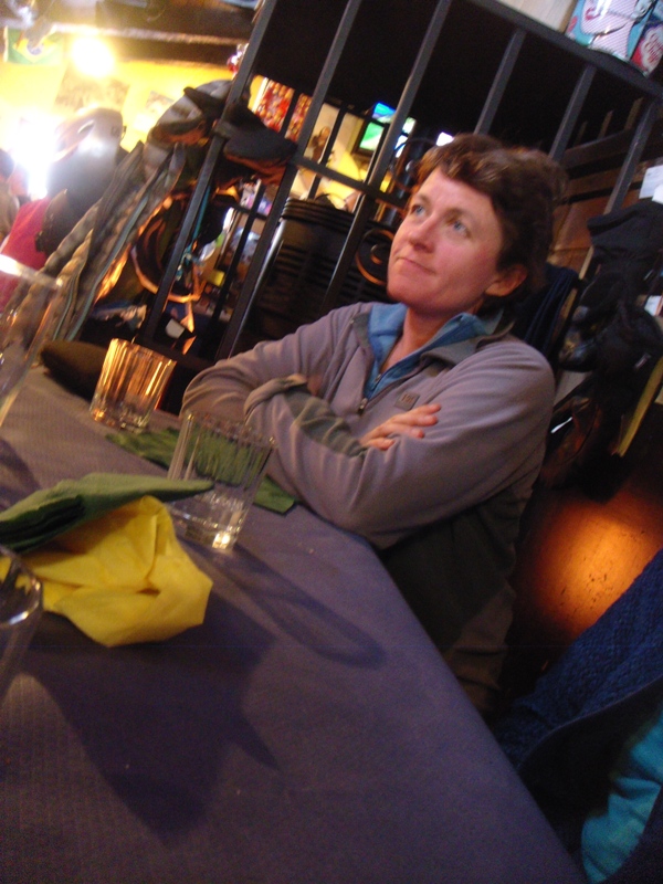 Breezy waits for coffee after pizza and prosecco at the Rifugio Maison Vieille in Courmayeur. Piste skiing was great. Not enough snow to safely venture off piste but the pizzas were excellent as usual.
