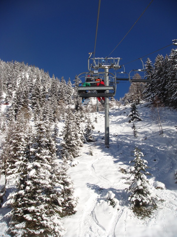 Snow covered trees at Le Brevent and some adventurous tracks in the off piste under the lift.