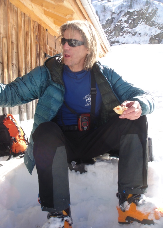 Patrick at lunch by the chalets on the TMB route in the valley bottom