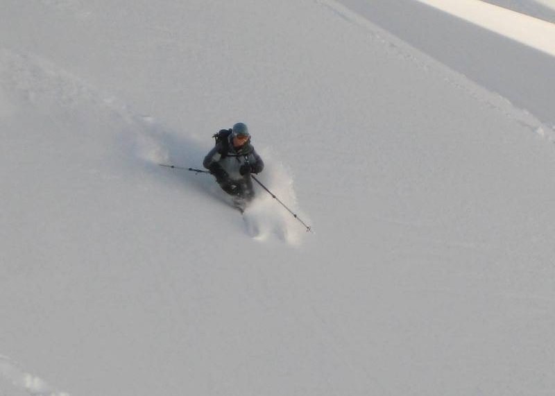 Breezy skiing the descent from Col de Dards. Perefct snow all the way down to Lac Blanc and beyond.