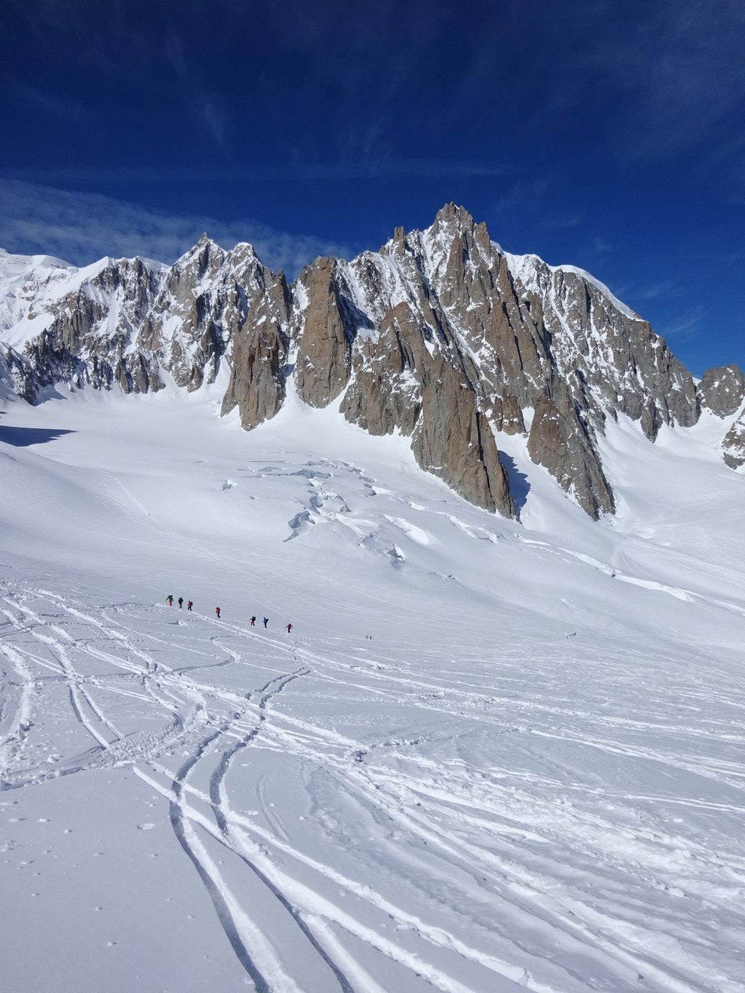 Ski tourers with a guide (Rob Jarvis) on the way up to the Skyway lift. Three of our clients were in the group staying at Ski Breezy