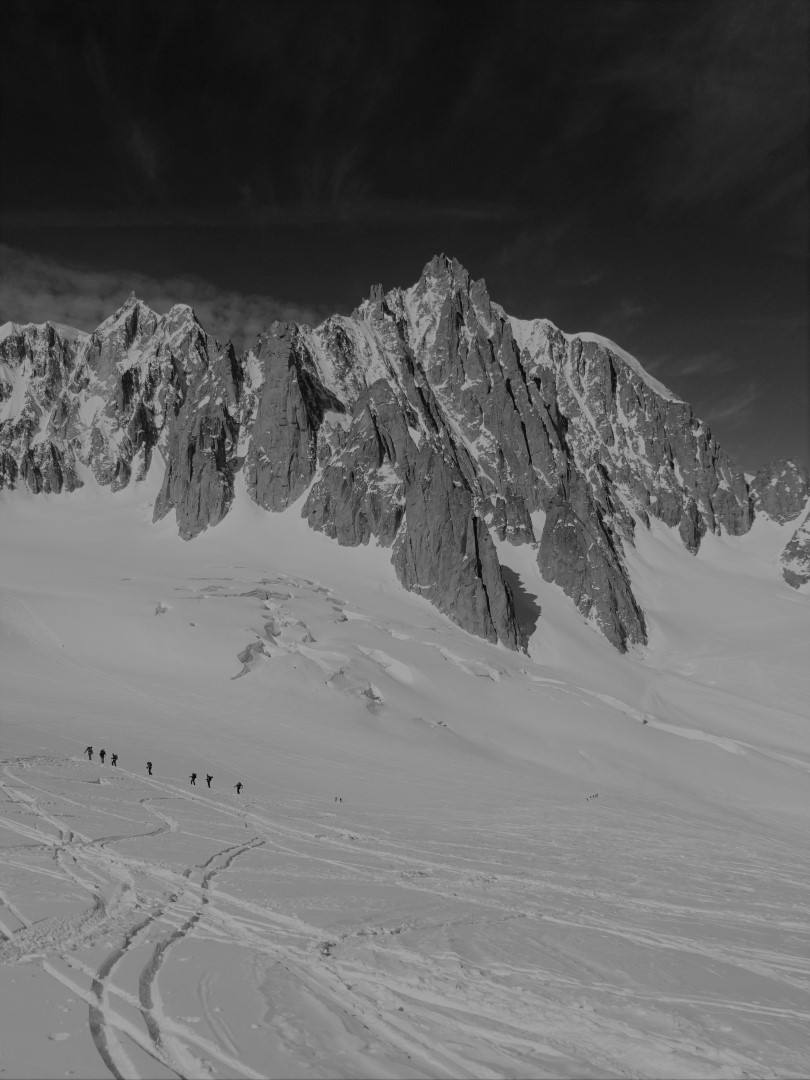 Ski tourers with a guide (Rob Jarvis) on the way up to the Skyway lift. Three of our clients were in the group staying at Ski Breezy