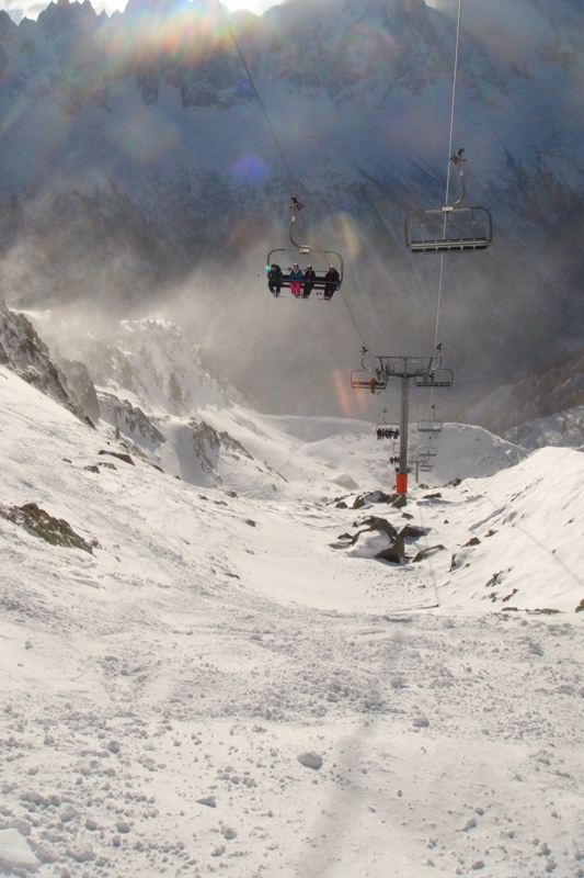 View of the Col Cornu chair lift and the gully beneath in New Year week