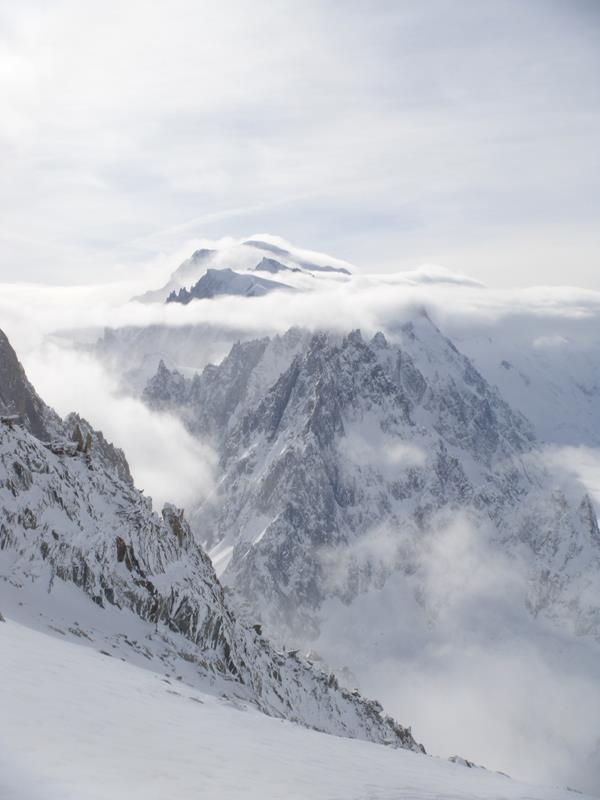 Mountain scenery looking from Grands Montets towards Mont Blanc. Sometimes when the bottom of the valley is in cloud the tops are beautiful and clear