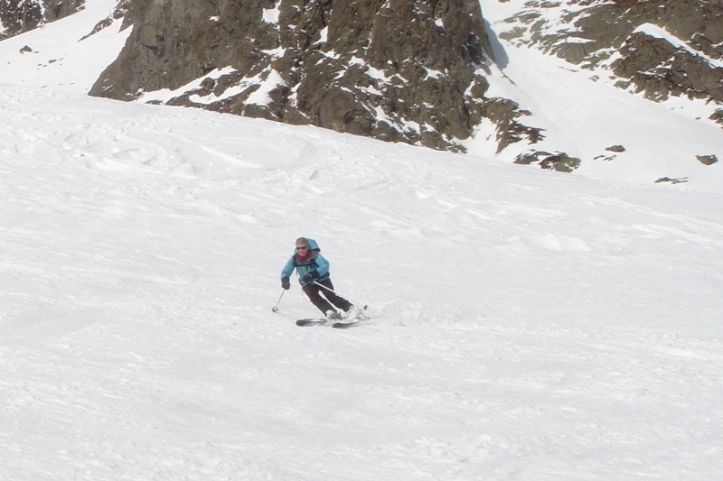 Soft surface to the snow off piste where it has got warmer as the day progressed.
