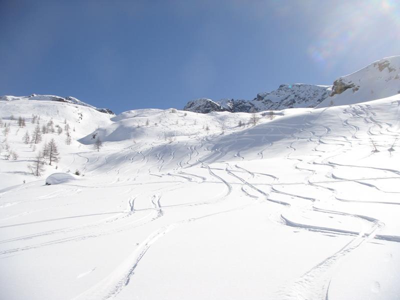 Ski Touring from Marecottes for day off from the chalet Chamonix. Fresh tracks all the way down. Not all these were ours, just the nicest ones!