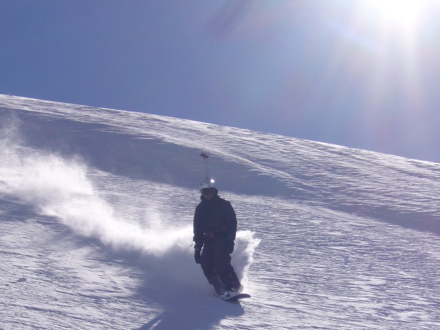 Ian snowboarding powder on the Le Tour Glacier having ski toured over Col de Passon from Les Grands Montets Chamonix Mont Blanc. Chamonix has so much to offer in backcountry skiing & boarding.
