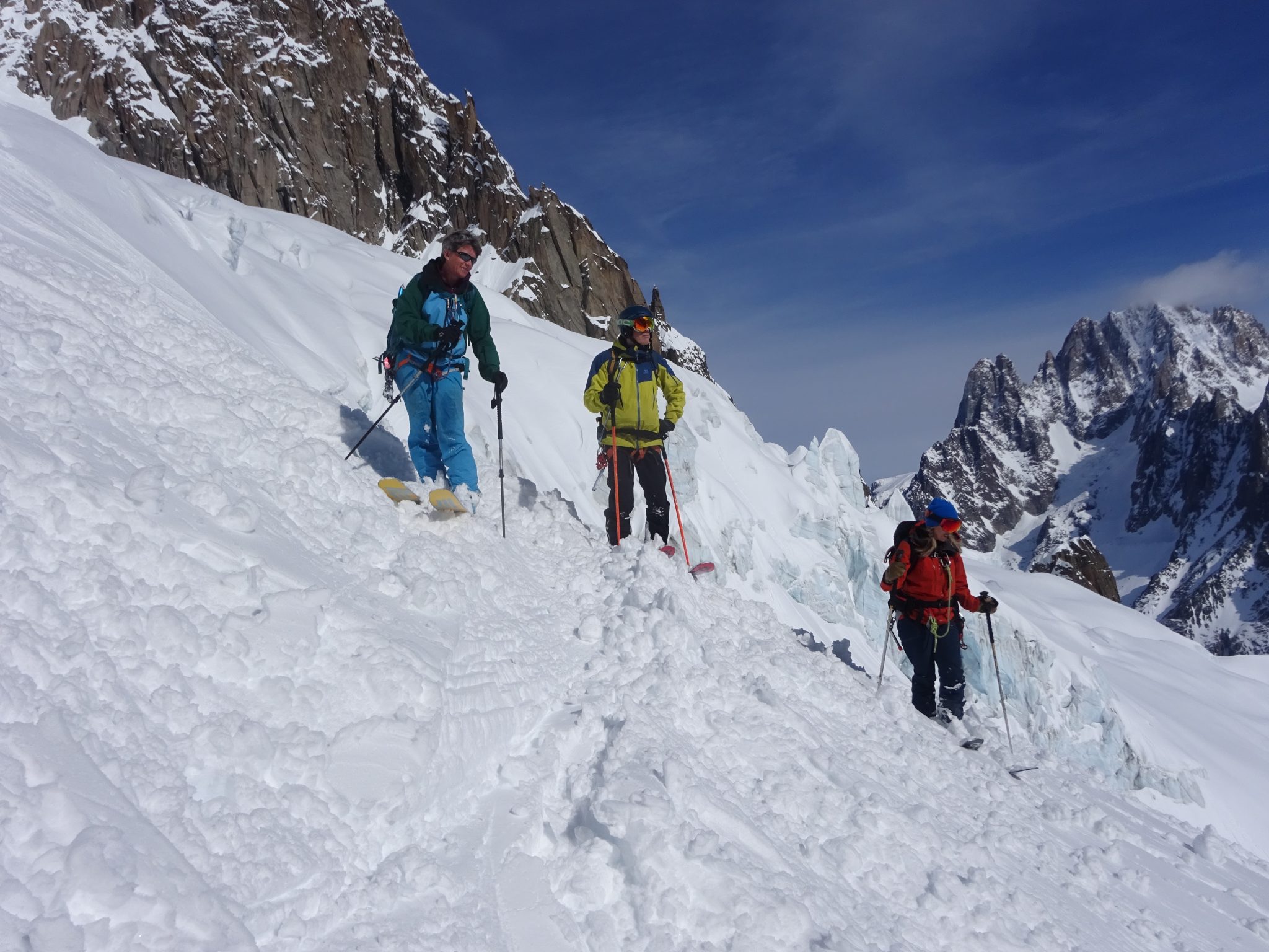 We got an invite from David and Asa at the top of the road to join them for a run off the Aiguille du Midi. There are various routes which constitute the Vallee Blanche and the Petit Envers du Plan is one of them. A friend of theirs, Nick, joined us.